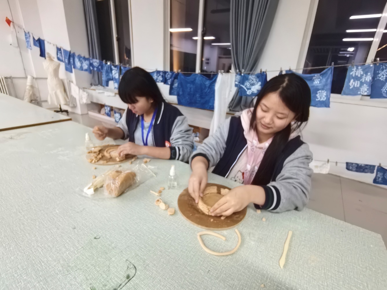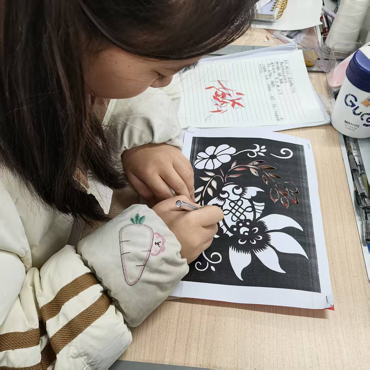 陶艺与布艺实训室更显创意灵动:巧手翻转中,泥团逐渐塑造成型;针线穿梭间,碎布变身精致挂饰。剪纸区里,红纸在指尖翻飞,很快化作喜字、窗花等作品,尽显传统美学魅力。