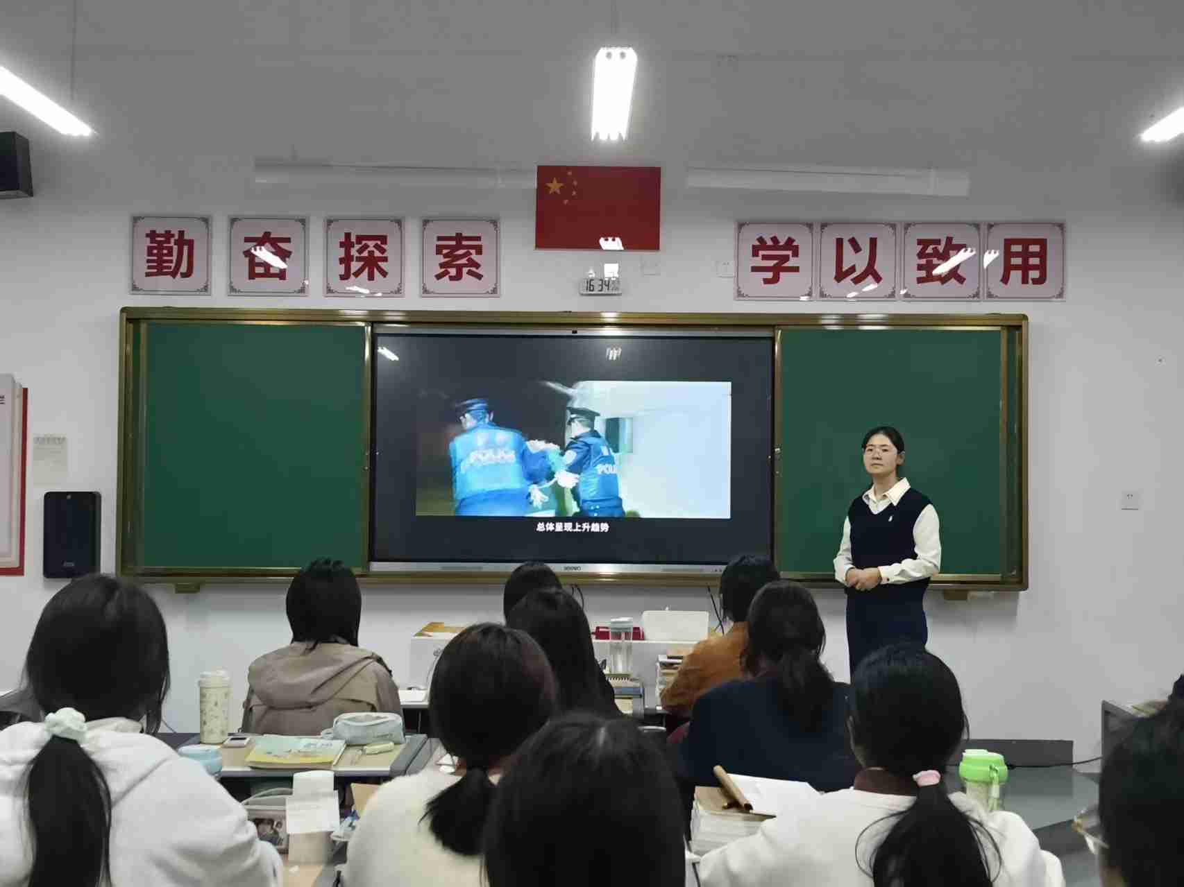 班会现场,沛县公安局专题片的真实案例引发强烈共鸣。视频中,民警结合《预防未成年人犯罪法》,对校园欺凌、网络沉迷、冲动伤人等未成年人常见违法犯罪类型进行深度剖析,通过 “案情还原 + 法律解读 + 后果警示” 的模式,清晰勾勒出不良行为向犯罪演变的轨迹。在 24级计算机班,班主任刘子薇老师暂停视频,针对 “未成年人寻衅滋事的责任边界” 展开补充讲解:“看似玩笑的肢体冲突,若造成伤害可能触犯法律,大家要守住行为底线。” 学生们专注观看、认真记录,不时在笔记本上标注关键法律要点。