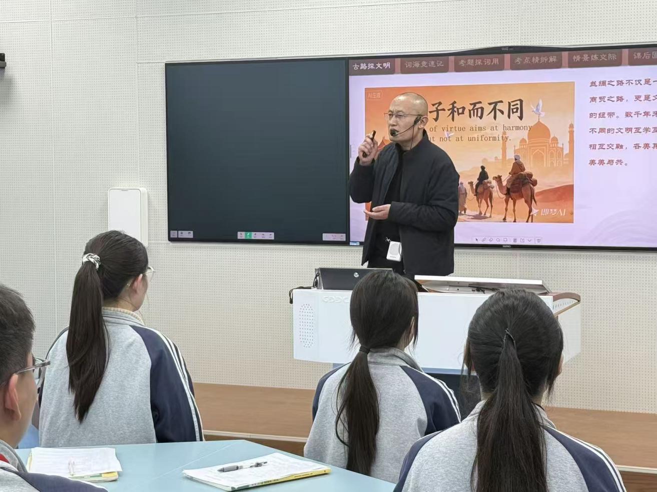 课堂上,授课教师们立足学科特点,巧妙融入思政元素:刘保伟老师的英语课以“丝绸之路”为载体,在语言知识复习中传递中外文明交流互鉴的理念。