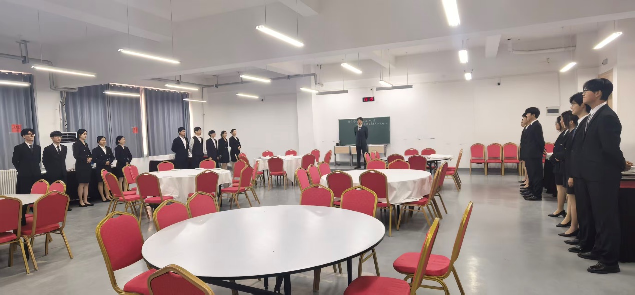 惠振国老师的《中餐宴会摆台》示范精准规范,让观摩教师直观感受职业技能教学的严谨性与实用性。