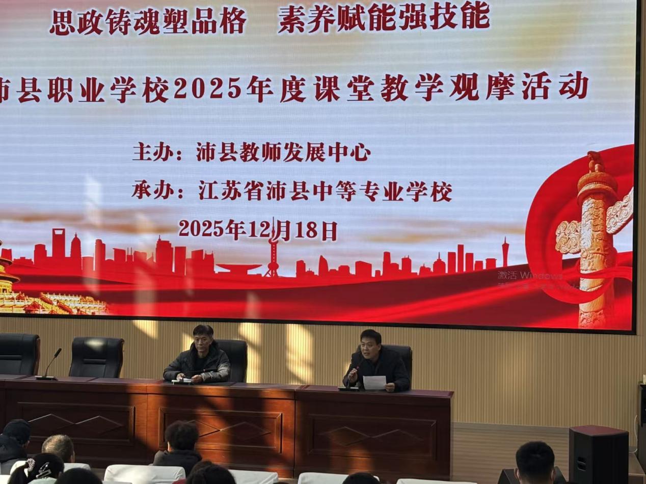 为深入推进职业教育三教改革,促进全县职业学校教学经验交流,强化思政教育与专业教学深度融合,2025年12月18日沛县中等专业学校成功举办以“思政铸魂塑品格,素养赋能强技能”为主题的沛县职业教育教学观摩活动。全县各职业学校及职普融通班相关学科骨干教师齐聚一堂,共赴这场聚焦教学改革、赋能育人质量的教研盛宴。
