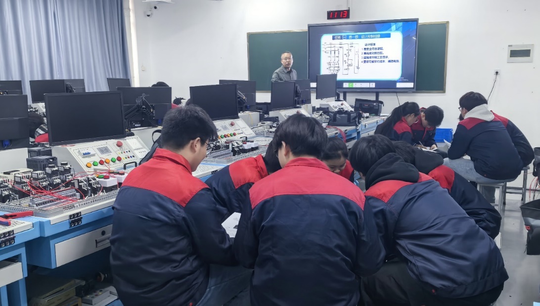 活动于当日上午 9:30 前完成报到,全天议程紧凑有序、内容充实,围绕 “课堂实践观摩 + 教学深度研讨 + 专题经验分享” 三大核心环节展开。在课堂教学观摩阶段,两位优秀教师带来了高水平的公开课展示:沛县中等专业学校的厉广彬老师以《互感和自感》为题,结合加工制造专业的实践需求,通过生动案例与互动实验,将抽象的电磁知识转化为贴近行业应用的教学内容,帮助学生建立理论与实践的连接;徐州市张集中等专业学校的姚成伟老师则聚焦《点动与连续混合控制电路》,依托真实的工业控制场景,演示电路搭建、故障排查等实操流程,充展现了 “做中学、学中做” 的职业教育特色,赢得在场教师的广泛认可。