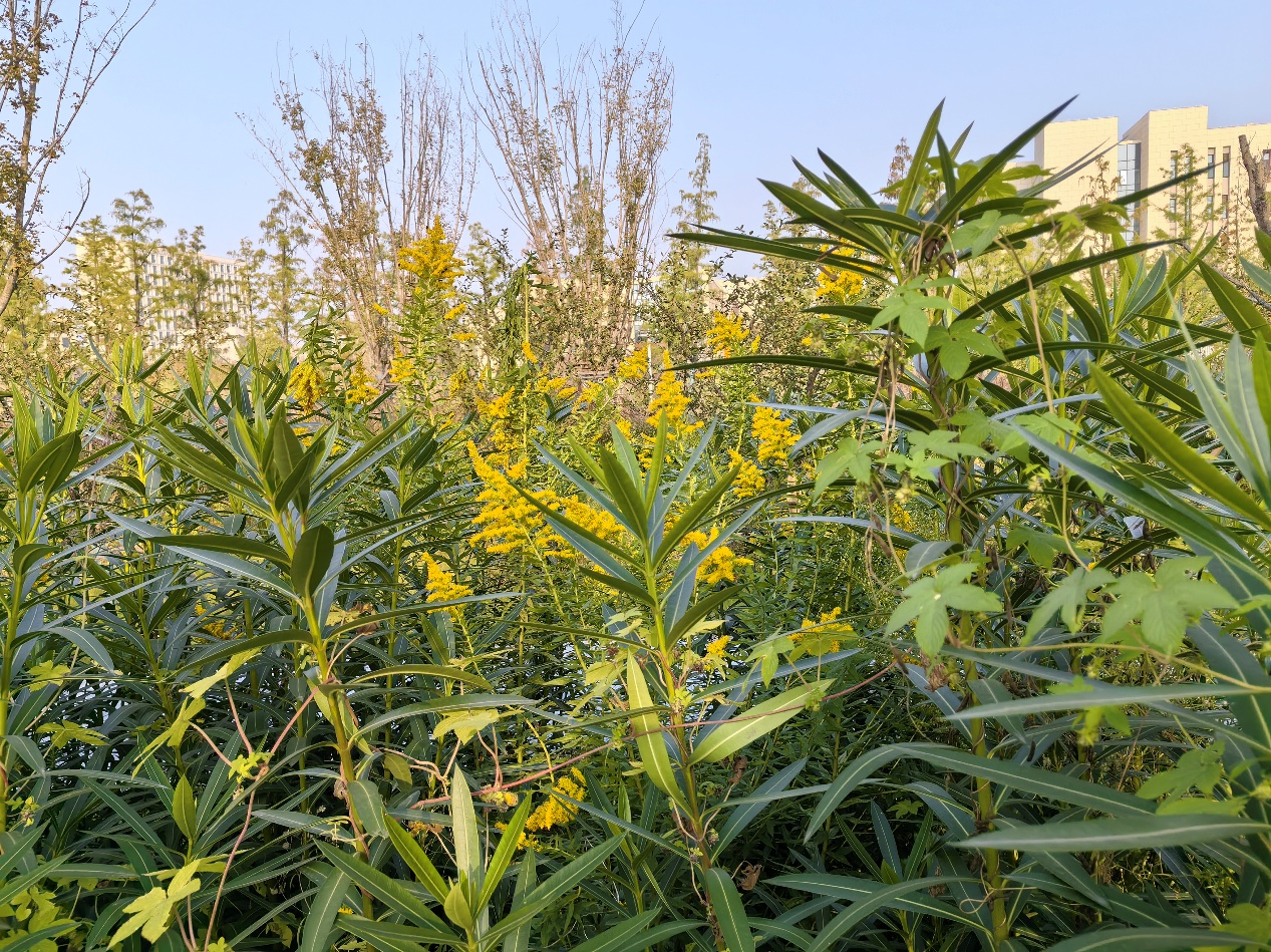 眼下正值 “加拿大一枝黄花” 盛花期,也是清除的关键时期。由于其根系发达、繁育能力极强,机械清除易残留根系,人工连根拔起成为最彻底的整治方式。讲解结束后,师生们迅速戴上手套,手持小铲分工协作:有的弯腰仔细辨认植株,避免误除本土植物;有的双手紧握花茎底部,发力将整株植物连带根系拔出;还有的将清理后的 “加拿大一枝黄花” 集中装袋,防止种子散落二次传播。阳光下,大家的额角渗出汗水,却丝毫没有放慢手中的动作,默契的配合、认真的神情,成为校园里一道践行劳动精神的亮丽风景线。