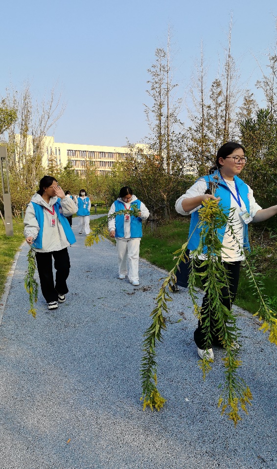 “大家仔细看,它的花穗呈金黄色,排列成圆锥状,根系像一张密网扎进土壤 —— 这就是‘生态杀手’加拿大一枝黄花。” 活动启动前,蒋翠英老师手持标本,结合现场实例向同学们细致讲解:“这种外来入侵植物繁殖力惊人,单株可产生 2 万多粒种子,根系还会分泌抑制其他植物生长的物质,真可谓‘黄花过处,寸草难生’,对校园生态平衡的破坏极大。”